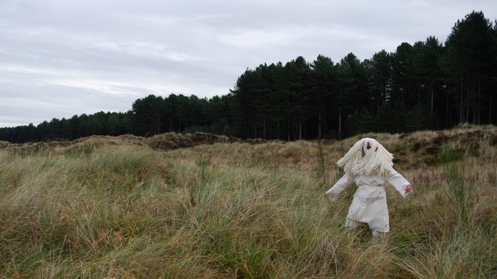 Photo documentation of a performance carried out in Tentsmuir Nature reserve, Scotland, November 2019